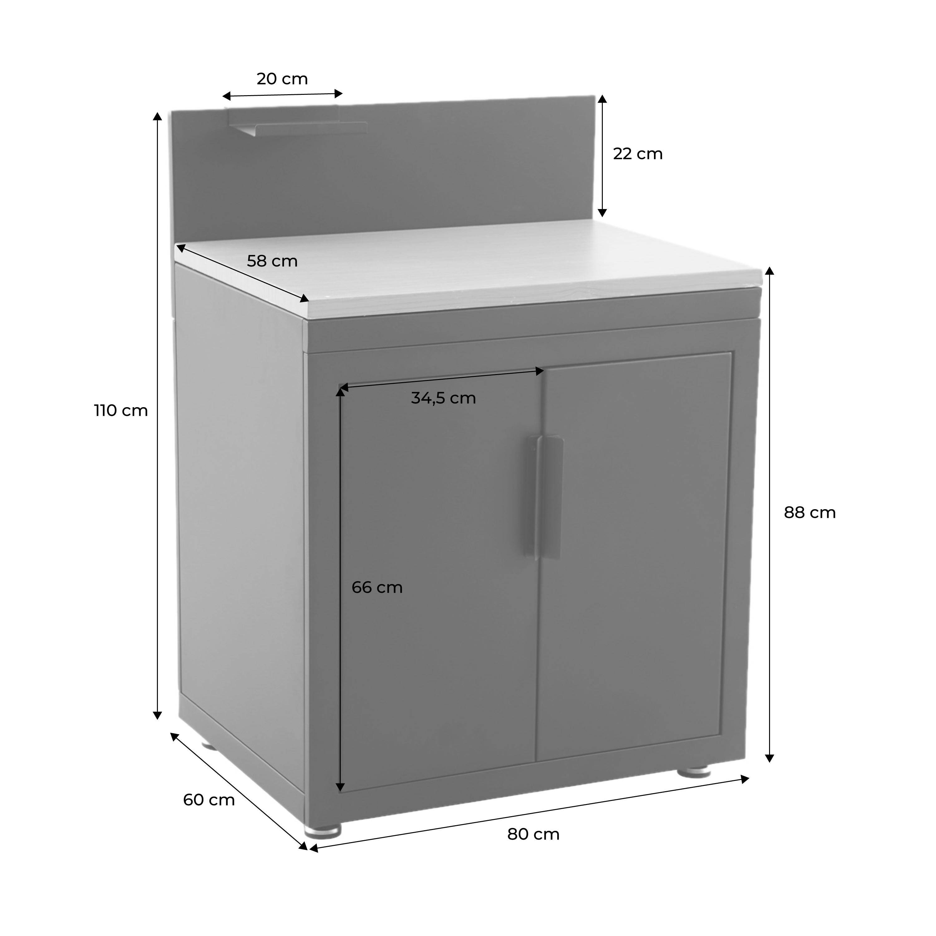 Cucina esterna in acciaio e decorazione in legno 2 porte 1 gancio, 80cm