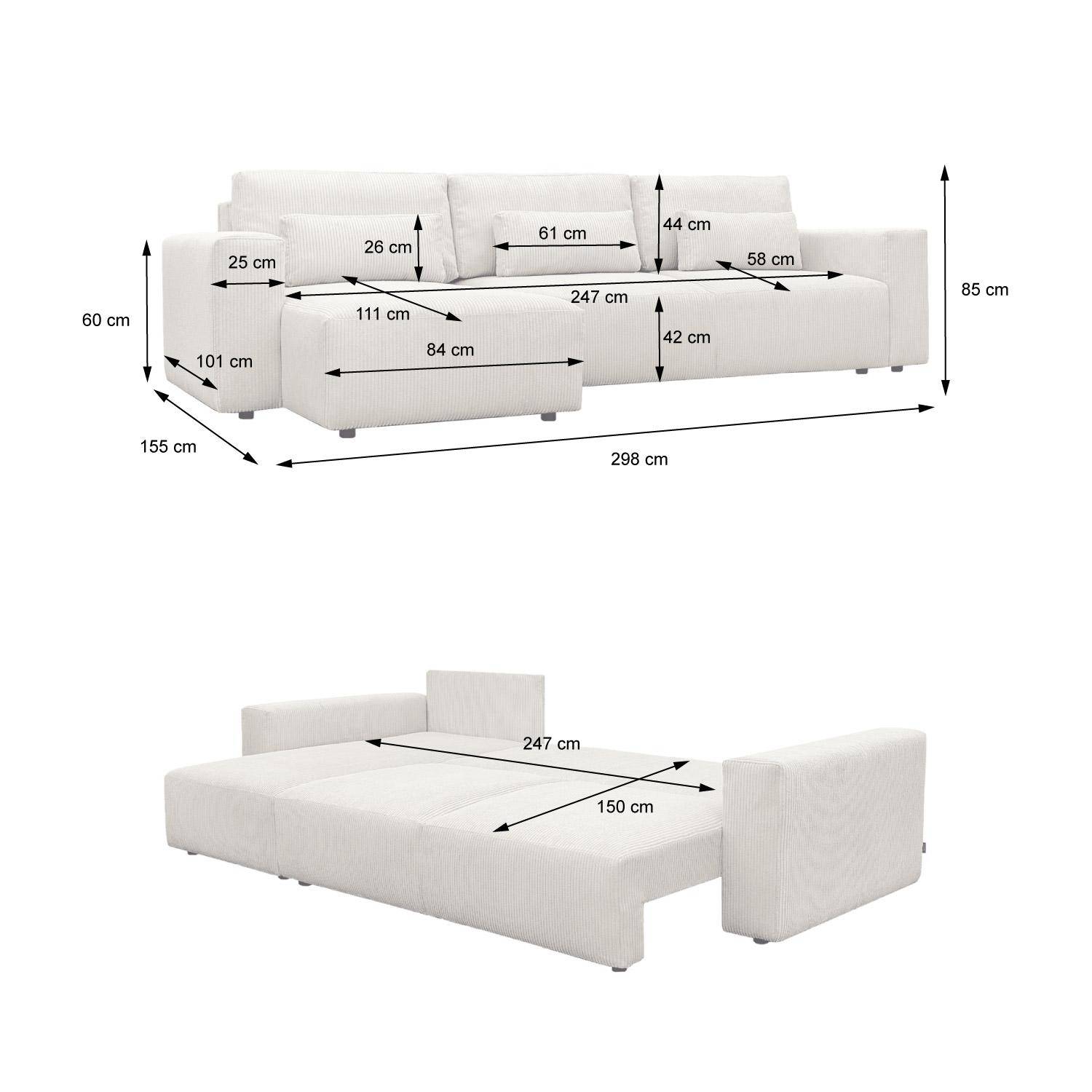 Divano letto angolare in tessuto ciniglia, 3 posti