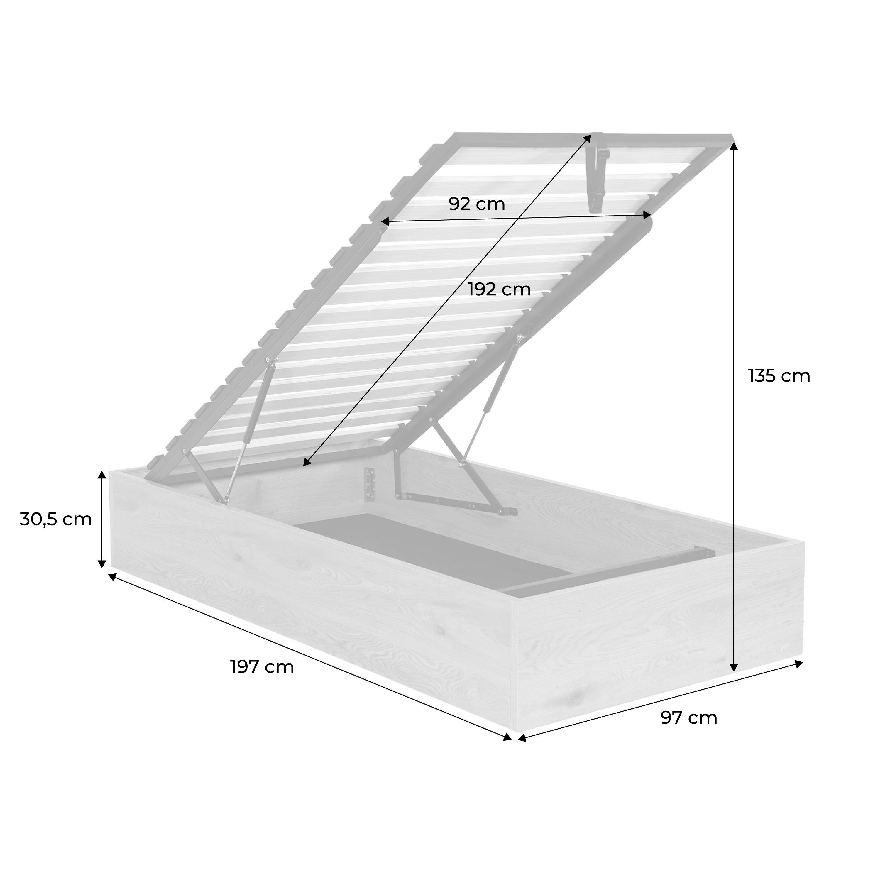 Letto contenitore con rete a doghe 90x190cm decorazione legno