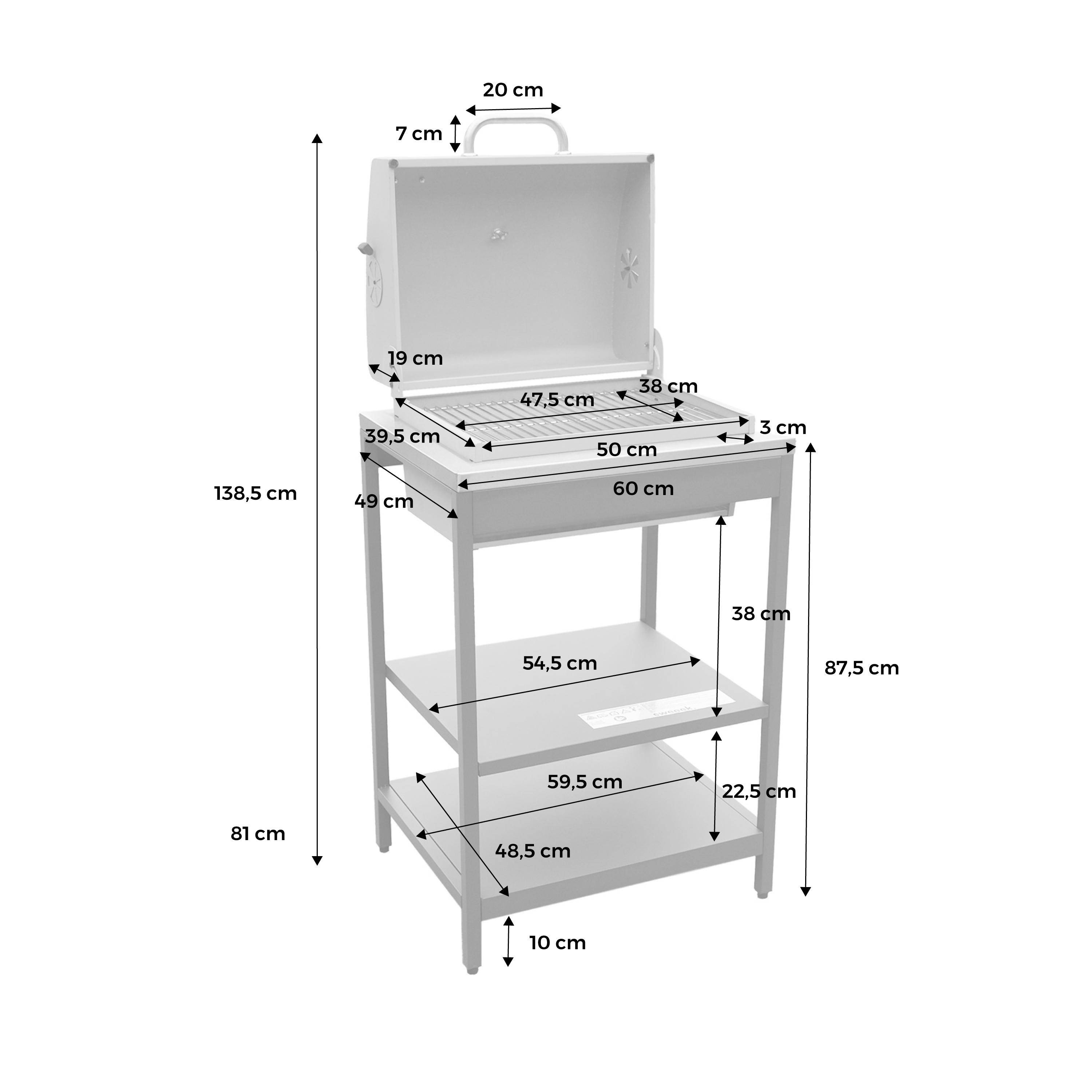 Mobile e barbecue a carbone in acciaio inossidabile con griglia cromata