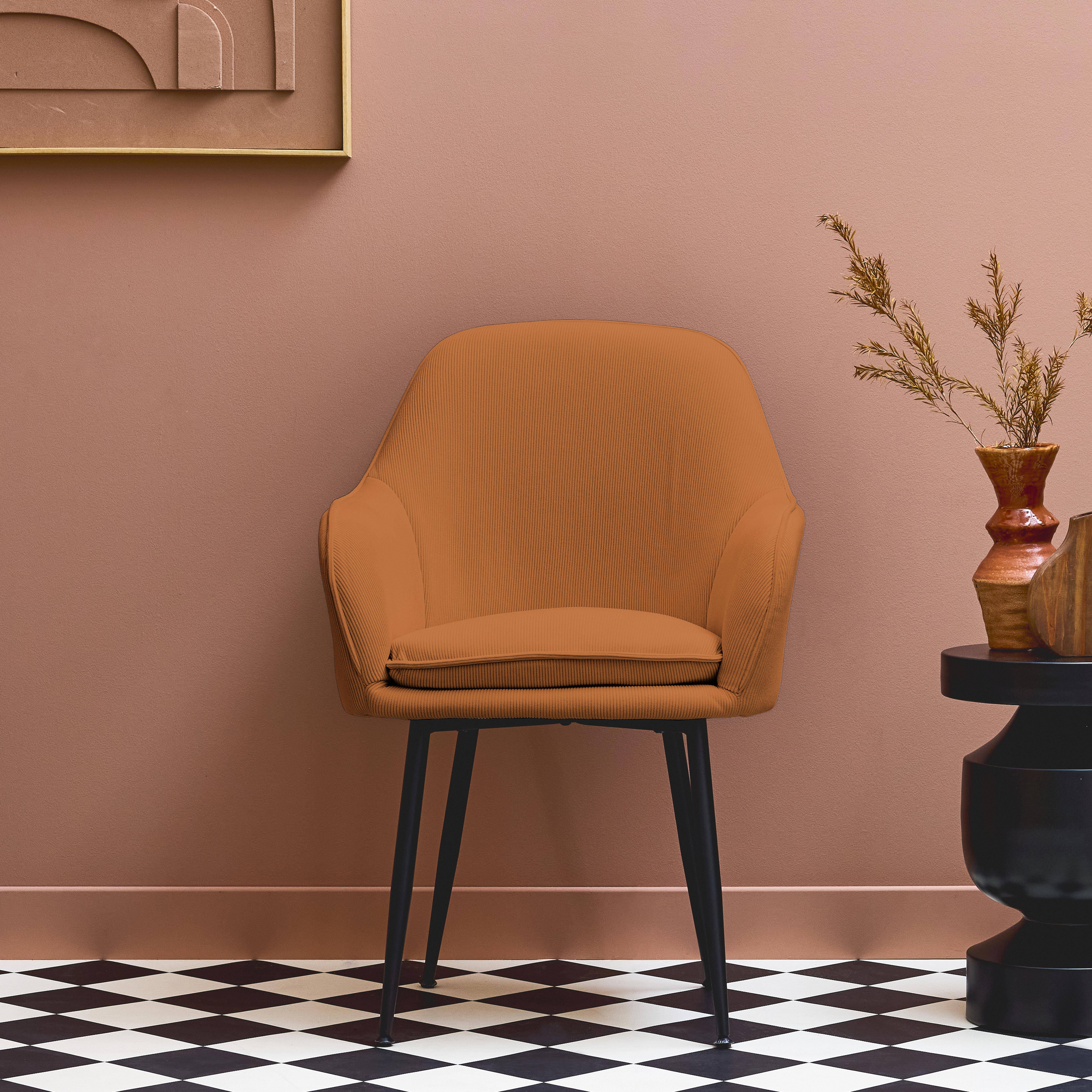 Poltrona in velluto a coste con gambe in metallo nero opaco