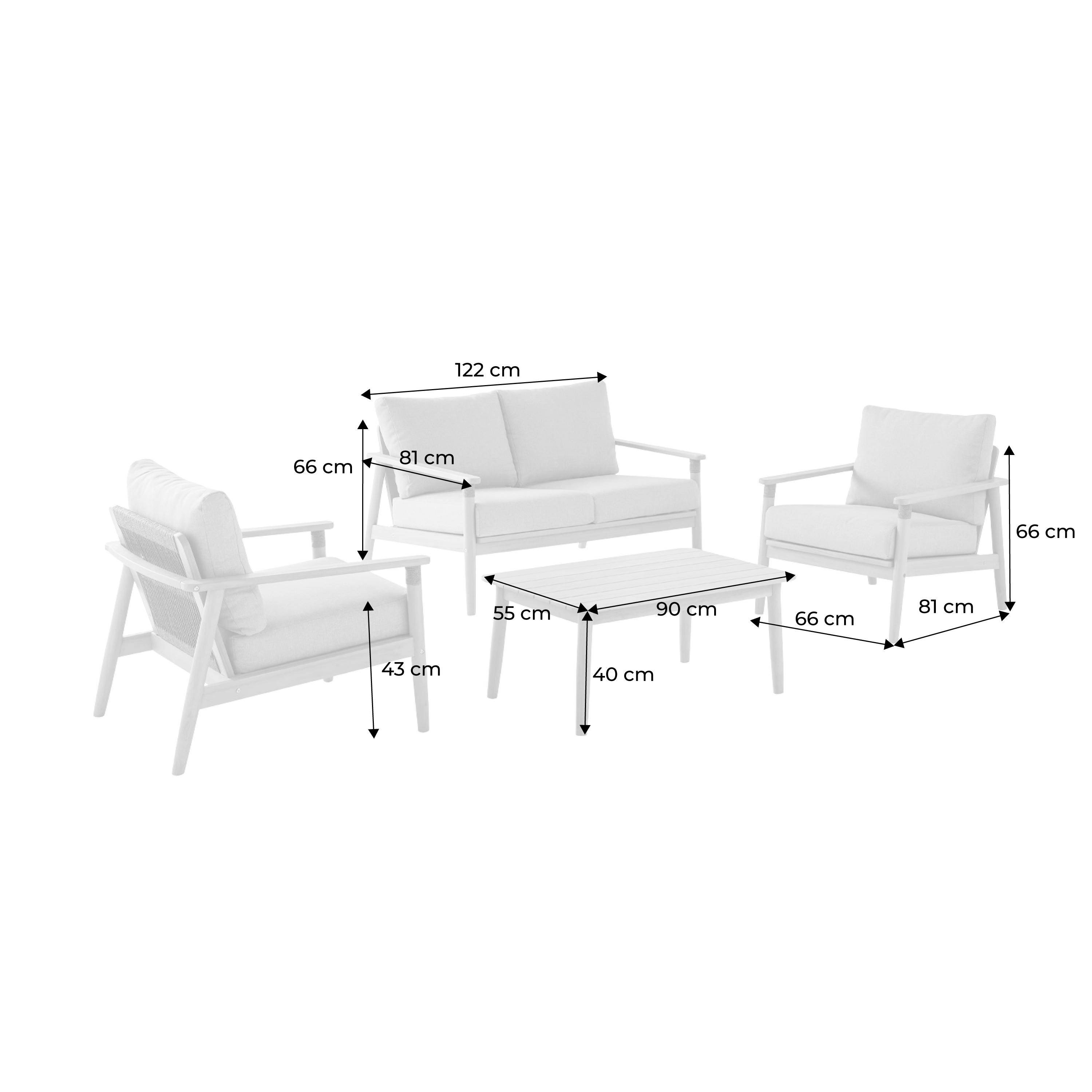 Salotto da giardino in legno di acacia e corde, 4 posti